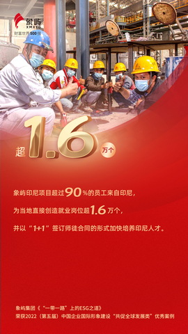 作為國家發(fā)改委“一帶一路”重點項目,象嶼印尼項目積極落實全球發(fā)展倡議,踐行ESG理念,發(fā)揮象嶼集團在供應(yīng)鏈、物流等領(lǐng)域優(yōu)勢,開展國際產(chǎn)能合作,既有力保障了中國市場對不銹鋼的巨大需求,提升了不銹鋼產(chǎn)業(yè)鏈的全球競爭力,也對印尼的產(chǎn)業(yè)發(fā)展、人民就業(yè)、基礎(chǔ)設(shè)施改善等發(fā)揮重要作用。