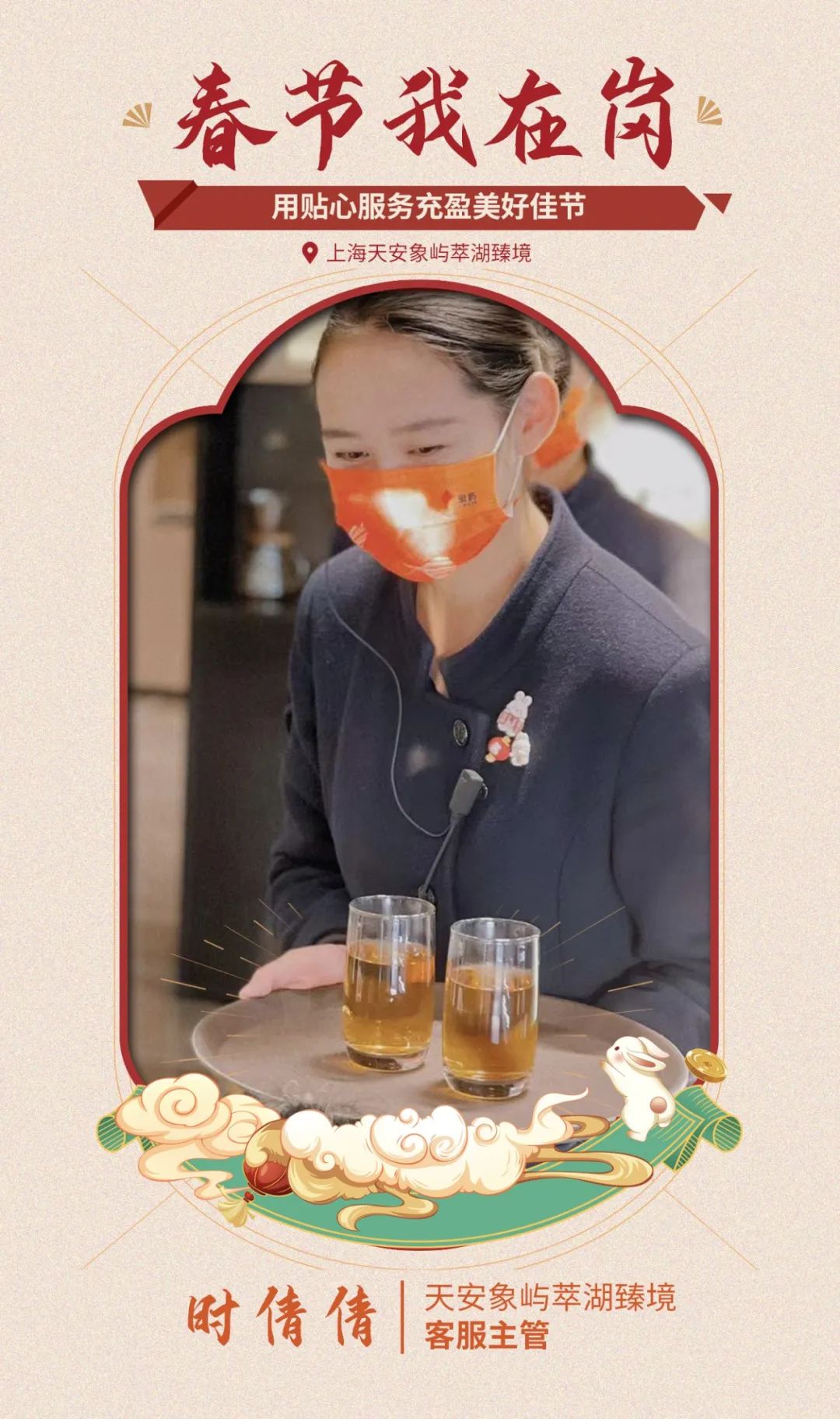春節(jié)期間,天安象嶼萃湖臻境售樓處正常營業(yè)不打烊。由于節(jié)日期間客服人員緊缺,時(shí)倩倩主動(dòng)請(qǐng)纓,保持在崗、帶教新人,和同事們一起,用來自象嶼的幸福生活細(xì)節(jié)充盈新年。
