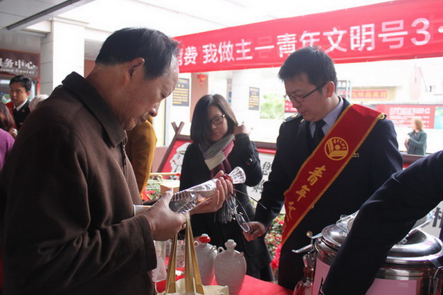 2017年315主題活動(dòng)現(xiàn)場,象嶼發(fā)展運(yùn)營中心聯(lián)合大嶝小鎮(zhèn)青年文明號(hào)聯(lián)創(chuàng)共建團(tuán)隊(duì),在大嶝市場設(shè)置煙酒、工藝品、食品三個(gè)鑒假專區(qū),向游客講解識(shí)假辨假的方法,吸引不少游客前來咨詢了解。該活動(dòng)已連續(xù)舉辦了五屆。