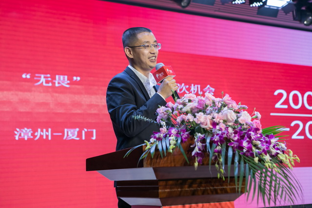 ▲福建象嶼房地產總經理陳志杰帶來宣講《振奮文化精神,緊抓發(fā)展機遇,以實干篤定前行》