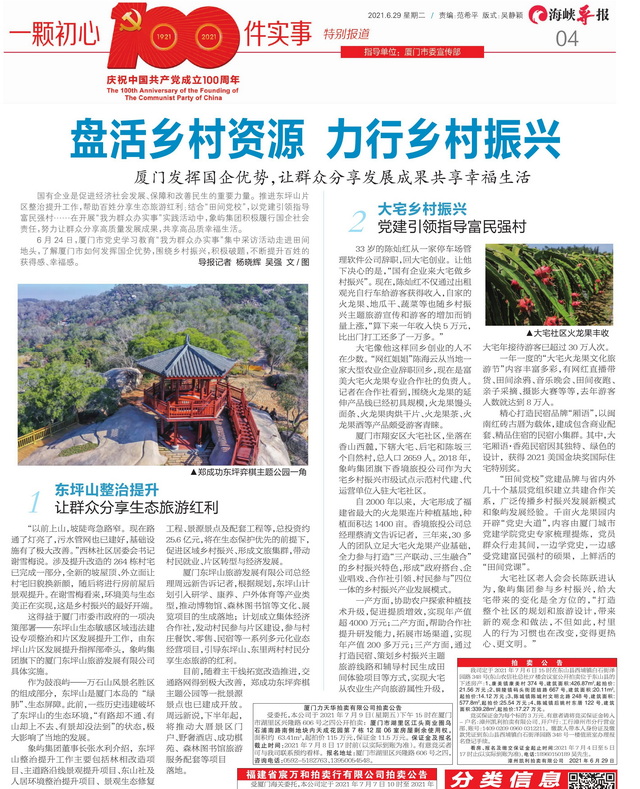 象嶼集團(tuán)旗下香境旅投公司總經(jīng)理蔡清文站在田埂上笑著說:“我們團(tuán)隊(duì)一行30多人常駐大宅,研究探索火龍果的‘致富路’。國企助力鄉(xiāng)村振興,重在賦能,重在引領(lǐng)老百姓形成內(nèi)生動(dòng)力,讓鄉(xiāng)親們更有獲得感、更有幸福感。我們認(rèn)為,鄉(xiāng)村振興重在營造,而不是改造,也就是要更加尊重鄉(xiāng)村的生態(tài),而不是簡單地城市化。我們將之概括為‘三生融合’,即實(shí)現(xiàn)生產(chǎn)、生活、生態(tài)的協(xié)調(diào)發(fā)展。”