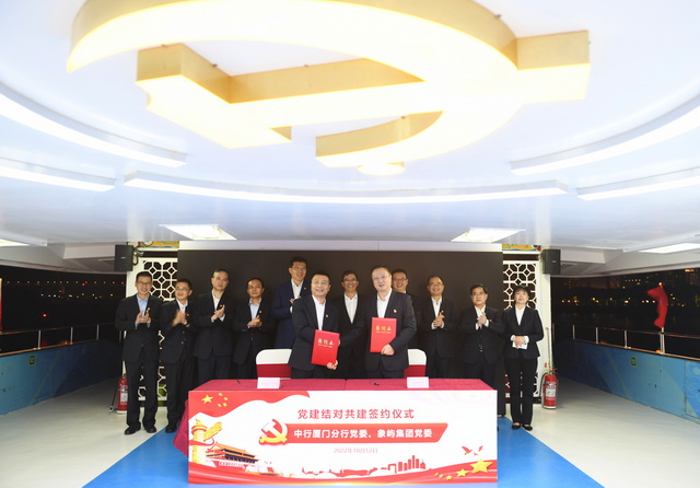 象嶼集團自成立之初,就與廈門中行開展良好合作并結成深厚友誼,是中行的總行級A類重點客戶,雙方在集團的五大業(yè)務板塊和跨境業(yè)務等領域均有深入合作。今后,雙方將以此次黨建共建簽約為新的起點,實現(xiàn)資源共享、責任共擔、優(yōu)勢互補,帶動業(yè)務合作、高質量發(fā)展邁上新臺階,攜手促進廈門地區(qū)的產業(yè)發(fā)展和經濟繁榮,以實際行動迎接黨的二十大勝利召開。