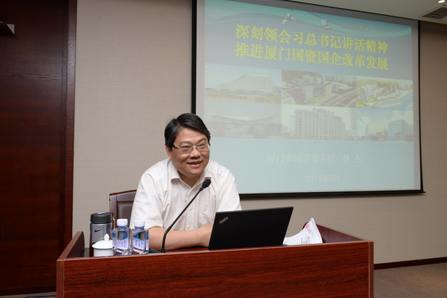 在輔導(dǎo)會上,林杰主任結(jié)合習(xí)總書記講話精神,解讀了新時期國資國企在經(jīng)濟社會發(fā)展中的定位和作用,系統(tǒng)分析了新時期國資國企改革的目標(biāo)和主要課題,重點通報了廈門市“十三五”國資國企改革的主要思路和保障措施,并結(jié)合大量的案例強調(diào)了在新常態(tài)下,廈門國企如何通過產(chǎn)融結(jié)合、產(chǎn)資結(jié)合、產(chǎn)城結(jié)合,在投身美麗廈門建設(shè)的同時實現(xiàn)自身的科學(xué)發(fā)展、跨越發(fā)展。