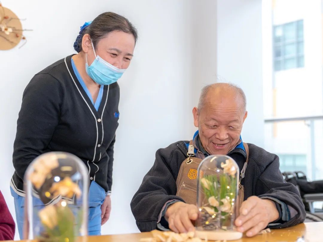 結合長者的身體情況,團隊為他們定制專屬的營養(yǎng)套餐,在飲食種類、營養(yǎng)搭配方面精心規(guī)劃。同時,為了解決吞咽困難長者不愛吃打糊餐的問題,團隊從餐食美觀度、口感、營養(yǎng)配比等方面進行了改良,讓長者愛上進食。根據(jù)長者的不同愛好和體質狀態(tài),團隊設計了手工制作、益智游戲、運動鍛煉等特色適老化活動,讓長者們在簡單的活動中享受快樂,收獲力所能及的滿足感。
