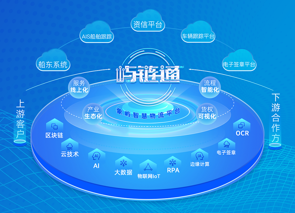 2022年,象嶼股份依托象嶼智慧物流倉儲(chǔ)體系,搭建數(shù)字供應(yīng)鏈服務(wù)平臺(tái)“嶼鏈通”,集成區(qū)塊鏈、物聯(lián)網(wǎng)、大數(shù)據(jù)、人工智能等技術(shù),推出預(yù)付款訂單融資“嶼采融”、在庫現(xiàn)貨質(zhì)押融資“嶼倉融”、在途現(xiàn)貨質(zhì)押融資“嶼途融”等產(chǎn)品矩陣,與多家金融機(jī)構(gòu)完成系統(tǒng)對(duì)接,并開發(fā)APP、公眾號(hào)、網(wǎng)頁端等多終端自助服務(wù)功能,實(shí)現(xiàn)全流程線上化的融資放款及解押放貨,最快5至10分鐘即可完成,為破解中小企業(yè)融資難、融資貴提供新渠道。