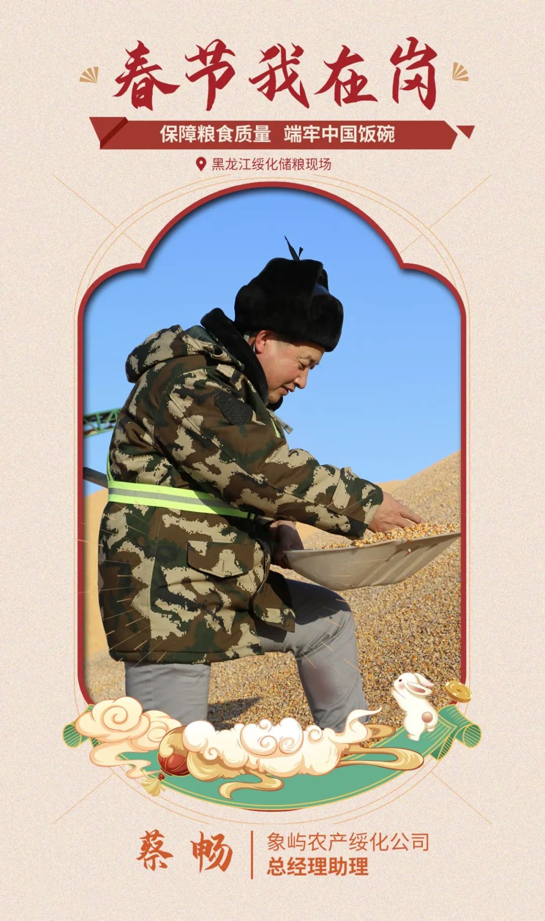 春節(jié)期間黑龍江綏化儲(chǔ)糧現(xiàn)場(chǎng)夜間最低溫度達(dá)到零下36度,綏化農(nóng)產(chǎn)總經(jīng)理助理蔡暢仍每天帶領(lǐng)值班員工檢查糧情,確保幾十萬噸糧食儲(chǔ)存安全。他們用庫(kù)內(nèi)電子檢溫系統(tǒng)監(jiān)控糧溫,實(shí)地巡檢倉(cāng)庫(kù)封條是否完好,又到臨儲(chǔ)場(chǎng)地用測(cè)溫桿檢測(cè)深層糧溫,查看糧食有無結(jié)露、結(jié)頂現(xiàn)象,以一絲不茍的態(tài)度守好大國(guó)糧倉(cāng)。