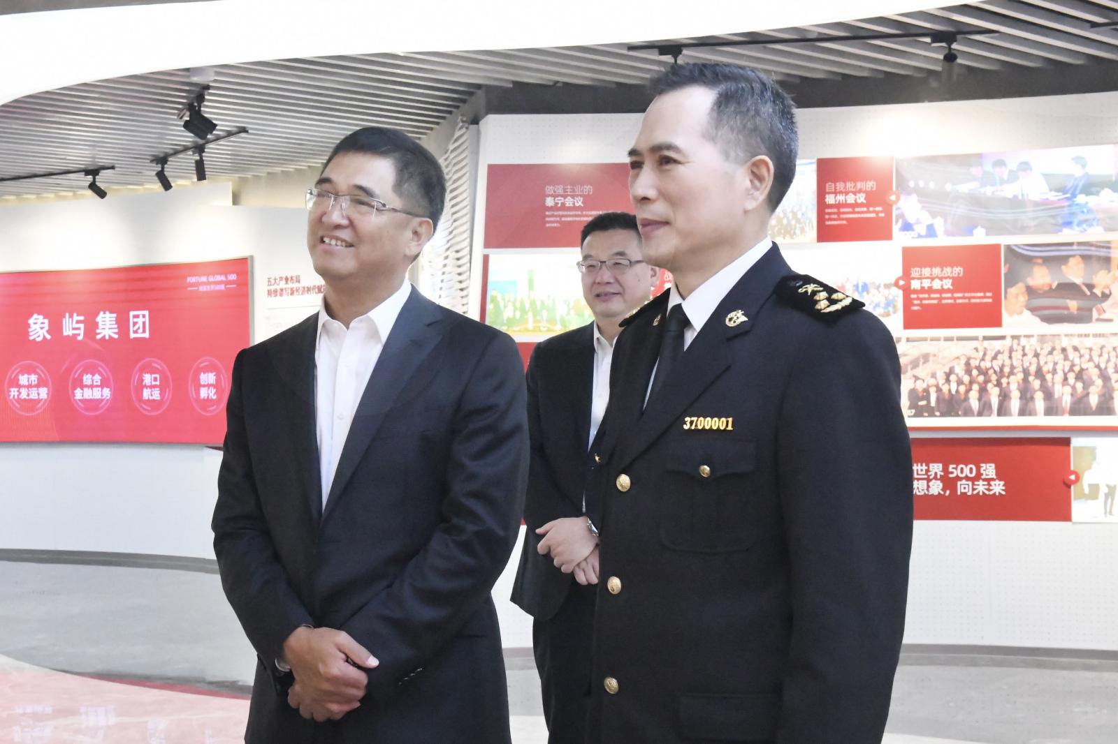 3月6日,廈門(mén)海關(guān)黨委書(shū)記、關(guān)長(zhǎng)朱光耀一行調(diào)研走訪(fǎng)象嶼集團(tuán)。象嶼集團(tuán)黨委書(shū)記、董事長(zhǎng)張水利,黨委副書(shū)記、總裁鄧啟東等熱情接待。