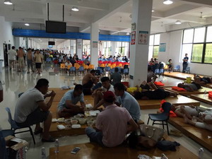 漁港停滿了來(lái)自兩岸的漁船,在工作人員的疏導(dǎo)下,漁民們也都上岸避風(fēng)了。上千漁民被安置在了漁港旁的避險(xiǎn)中心,免費(fèi)的食品是這個(gè)臺(tái)風(fēng)天最溫暖的禮物。或就餐,或休息,由于處置得當(dāng),漁民們并沒(méi)有臺(tái)風(fēng)來(lái)臨的慌亂。有電視有空調(diào),漁民都說(shuō),也只有廈門(mén)的避險(xiǎn)中心才有這么好的條件。