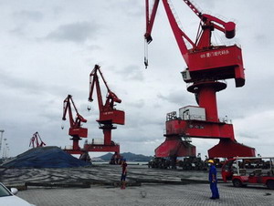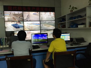 碼頭早已清場(chǎng),所有大型設(shè)備均已拉上防風(fēng)鎖?,F(xiàn)場(chǎng)還有工作人員進(jìn)行最后的加固工作,水泥擋板后面是銅精礦倉(cāng)庫(kù)。碼頭很大,為確保萬(wàn)無(wú)一失,工作人員24小時(shí)守候監(jiān)控,隨時(shí)排除險(xiǎn)情。