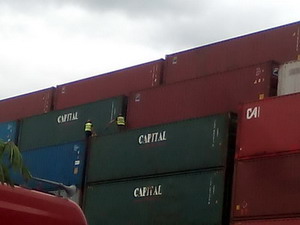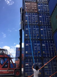 集裝箱堆積起來(lái)有20多米高,臺(tái)風(fēng)中,堆箱的穩(wěn)固性就顯得尤為重要。廈門(mén)、福州兩地的堆場(chǎng)早在前兩天就著手相關(guān)加固防護(hù)工作。8日白天,又有工作人員迎著大風(fēng)爬上樓頂檢查加固鋼架,不到臺(tái)風(fēng)來(lái)臨,時(shí)刻也不掉以輕心。