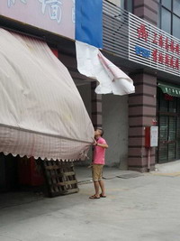園區(qū)值班人員一邊早早通知經(jīng)營(yíng)商戶檢查防臺(tái)加固,一邊隨時(shí)監(jiān)控著園區(qū)的安全狀況。