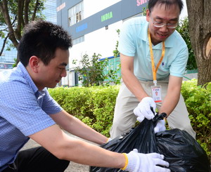 象嶼股份總經(jīng)理鄧啟東放下手頭繁忙事務(wù),組織全體員工利用午休時間清理象嶼保稅區(qū)一期。象嶼集團旗下各公司經(jīng)營班子紛紛帶頭,示范作用感召越來越多的象嶼人積極參與進來。