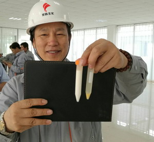 中午11時(shí)40分,淀粉車間傳來喜訊,玉米成功通過浸泡、破碎、分離、洗滌、脫水、干燥等工序后成功產(chǎn)出淀粉及副產(chǎn)品。象嶼生化生產(chǎn)總監(jiān)林繼民介紹,短短四小時(shí)便能一次性試車成功,這在淀粉行業(yè)史無前例,象嶼生化再創(chuàng)佳績(jī)!