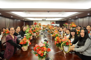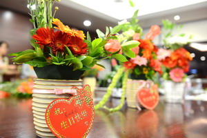 參加培訓(xùn)的女職工們用自己的插花作品祝福集團(tuán)21歲生日快樂