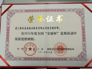 日前,中華全國總工會、國家安全生產(chǎn)監(jiān)督管理總局聯(lián)合下文表彰2015年度全國“安康杯”勞動競賽優(yōu)勝班組,象嶼高尚物業(yè)秩序維護部獲此殊榮。