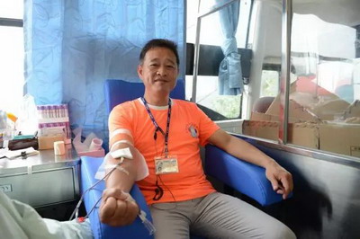 “看到這邊在搞無償獻血活動就臨時決定過來了,我身體壯,能幫更多的人我就滿足了。見笑了,剛在工地施工,滿身的泥垢,我先沖一下手臂再獻血。”