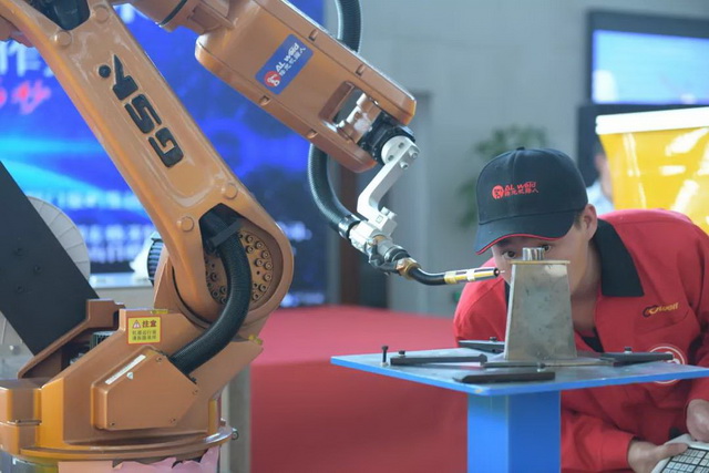 分組焊接工件,機器人編程示教,實地焊接……參賽選手們一絲不茍,眼力、手力、腦力并行,電光火石間閃爍著大國工匠的認真、專業(yè)和敬業(yè)。