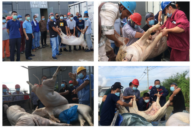 長時間停留海外、加班加點,思鄉(xiāng)、疲倦是人之常情。在象嶼集團黨委的關心下,在黨委副書記、總裁陳方的具體指導下,象嶼管理團隊積極行動起來,慰問外協(xié)單位一線員工??紤]到發(fā)放豬肉比較實在,又能滿足中國員工對家鄉(xiāng)味道的想念,“尋豬”一事就這樣提上日程。