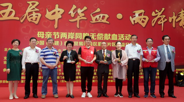 主辦方為兩岸同胞無償獻(xiàn)血公益做出貢獻(xiàn)的組織和個人頒獎。