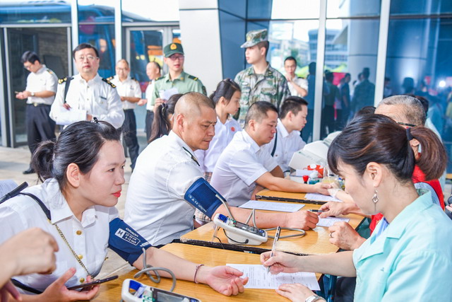 11日上午8點半左右,在自貿(mào)時代廣場,除了臺胞獻(xiàn)血志愿者之外,不少廈門的職工群眾也踴躍參加。來自駐廈某部隊官兵代表,以及來自廈門海關(guān)等企事業(yè)單位的職工群眾們紛紛組團(tuán)前來獻(xiàn)血,整齊的隊伍、陽剛的面容成為一道亮麗的風(fēng)景線,不僅體現(xiàn)了軍民魚水深情,更體現(xiàn)了兩岸一家人的大愛無疆。