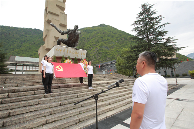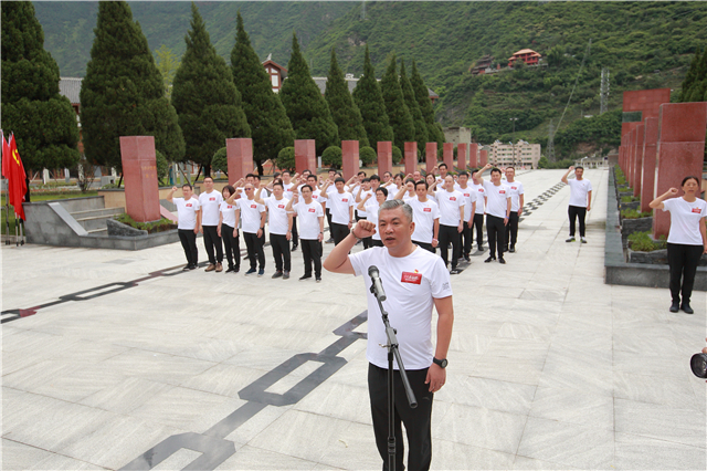 重溫入黨誓詞,牢記入黨初心。在紅軍飛奪瀘定橋紀(jì)念碑前,在鮮紅的黨旗下,劉志宏書(shū)記帶領(lǐng)全體黨員舉起右拳,神情莊重、精神飽滿,齊聲重溫入黨誓詞,感受涌動(dòng)的初心,激發(fā)前行的動(dòng)力。鏗鏘有力的宣誓聲響徹現(xiàn)場(chǎng),宣示著“挑戰(zhàn)之旅”廣大黨員堅(jiān)定不移的政治信念和矢志奮斗的堅(jiān)強(qiáng)決心。