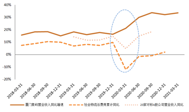 根據(jù)這一戰(zhàn)略選擇,多年來廈門象嶼逐步調(diào)整客戶結(jié)構(gòu),逐步降低貿(mào)易商客戶占比,提高制造業(yè)客戶占比,打造具有廈門象嶼特色的“產(chǎn)業(yè)全鏈條服務(wù)模式”。長(zhǎng)期的戰(zhàn)略布局也提高了廈門象嶼應(yīng)對(duì)風(fēng)險(xiǎn)的能力,特別是在物流和倉儲(chǔ)領(lǐng)域的扎根,使得廈門象嶼形成了又寬又深的“護(hù)城河”。