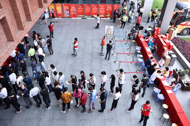 上周六早上8點多,獻血現(xiàn)場便陸續(xù)有人在等候。記者看到,在象嶼集團志愿者的引導下,大家按常態(tài)化防疫措施佩戴好口罩,有序進行無償獻血。
