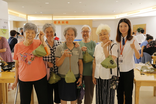 在象嶼慈愛老年養(yǎng)護(hù)中心,工作人員與入住長者們一起包粽子、話家常,送上美好祝福;在象嶼·龍山匯,工作人員不僅為商戶送上暖心的粽子禮包,還為附近的居民和住戶清洗木棉絮。
