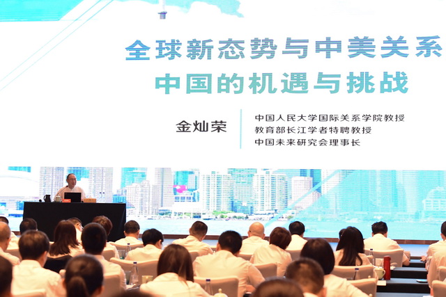 為更好把握“百年未有之大變局”,加強(qiáng)對(duì)國(guó)際形勢(shì)、宏觀環(huán)境的研判與應(yīng)對(duì),本次會(huì)議還邀請(qǐng)中國(guó)人民大學(xué)國(guó)際關(guān)系學(xué)院副院長(zhǎng)金燦榮教授帶來《全球新態(tài)勢(shì)與中美關(guān)系:中國(guó)的機(jī)遇與挑戰(zhàn)》專題講座。金教授以高站位和廣視野,深刻分析國(guó)際熱點(diǎn)問題和世界經(jīng)濟(jì)重塑的基本趨勢(shì),從新的國(guó)際格局、新的現(xiàn)代化模式、新的工業(yè)革命、新的全球治理等視角解析“百年未有之大變局”,提出對(duì)中國(guó)企業(yè)未來發(fā)展的建議。