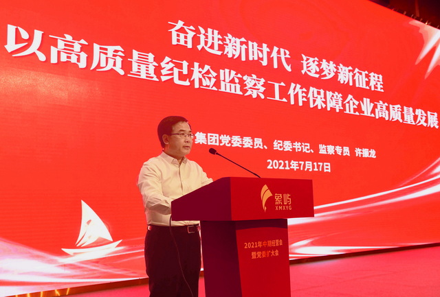 集團(tuán)紀(jì)委書記許振龍以《奮進(jìn)新時(shí)代 逐夢(mèng)新征程,以高質(zhì)量紀(jì)檢監(jiān)察工作保障企業(yè)高質(zhì)量發(fā)展》為題做了集團(tuán)上半年紀(jì)委工作報(bào)告,總結(jié)回顧了上半年紀(jì)檢工作亮點(diǎn)和成效,分析研判當(dāng)前形勢(shì),并對(duì)下半年重點(diǎn)工作進(jìn)行部署,強(qiáng)調(diào)“五個(gè)聚焦”。