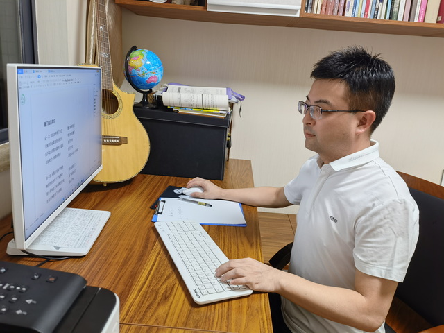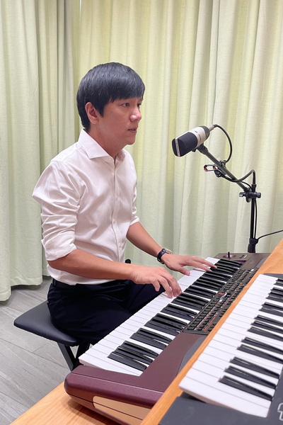 作曲者新圩學(xué)校音樂教師朱冰林在這次疫情中情況特殊,他就居住在同安封控區(qū)內(nèi)。因此疫情發(fā)生后,他和小區(qū)的其他居民一樣居家不出,認真配合做好每一輪核酸檢測。居家期間,他寫出了《廈門就是我們》的旋律。由于無法外出到專業(yè)場所錄音制作,他就自彈自唱。