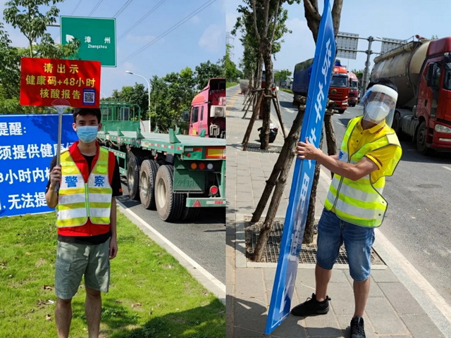 9月17日中午1點25分,共產(chǎn)黨員、象嶼建設集團防疫志愿者服務隊隊長郭振華接到海滄區(qū)疫情防控指揮部的通知,要求在下午三點前到達位于海滄海翔大道東埔村的檢查站點,參與交通防控協(xié)管工作。