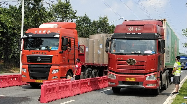 臨近檢查站,車輛已出現(xiàn)嚴重擁堵。從導航軟件上看到排隊的車龍已近3公里,郭振華當機立斷:“下車步行!”隊員們立即跟上,頂著頭頂?shù)难籽琢胰毡枷驒z查站。“坐在空調(diào)車里慢慢排隊,等到達檢查站,估計要四五點鐘。我們不能等。”他們說,作為象嶼人、國企人,參與抗疫,就要竭盡全力、問心無愧。最終,象嶼志愿者們在規(guī)定的三點前準時到位,成為第一支到達的志愿者隊伍。