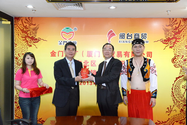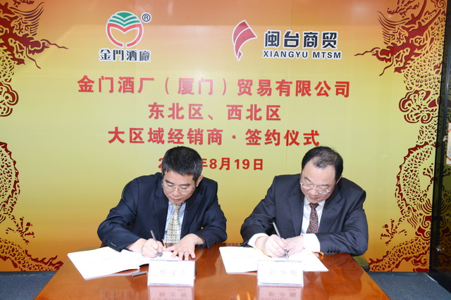 8月19日上午,在廈門立信廣場19樓,金門酒廠(廈門)貿(mào)易有限公司與象嶼集團(tuán)旗下廈門閩臺商貿(mào)有限公司舉行特許經(jīng)銷簽約儀式,閩臺商貿(mào)取得金酒在東北區(qū)、西北區(qū)特許獨家經(jīng)銷權(quán)。意味著在這兩個區(qū)域的大陸消費者只有通過閩臺商貿(mào)的經(jīng)銷渠道才能買到和喝到真正由臺灣金門酒廠生產(chǎn)的金門高粱酒正品。