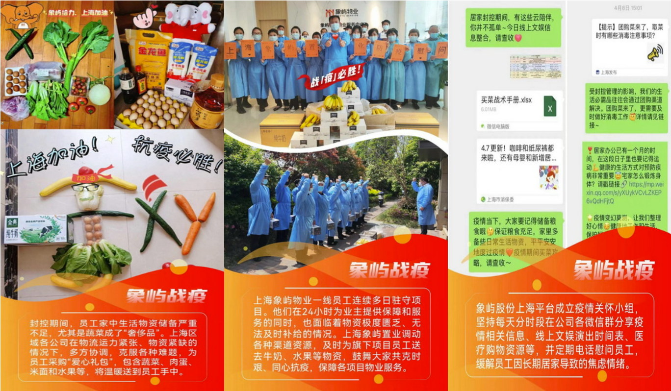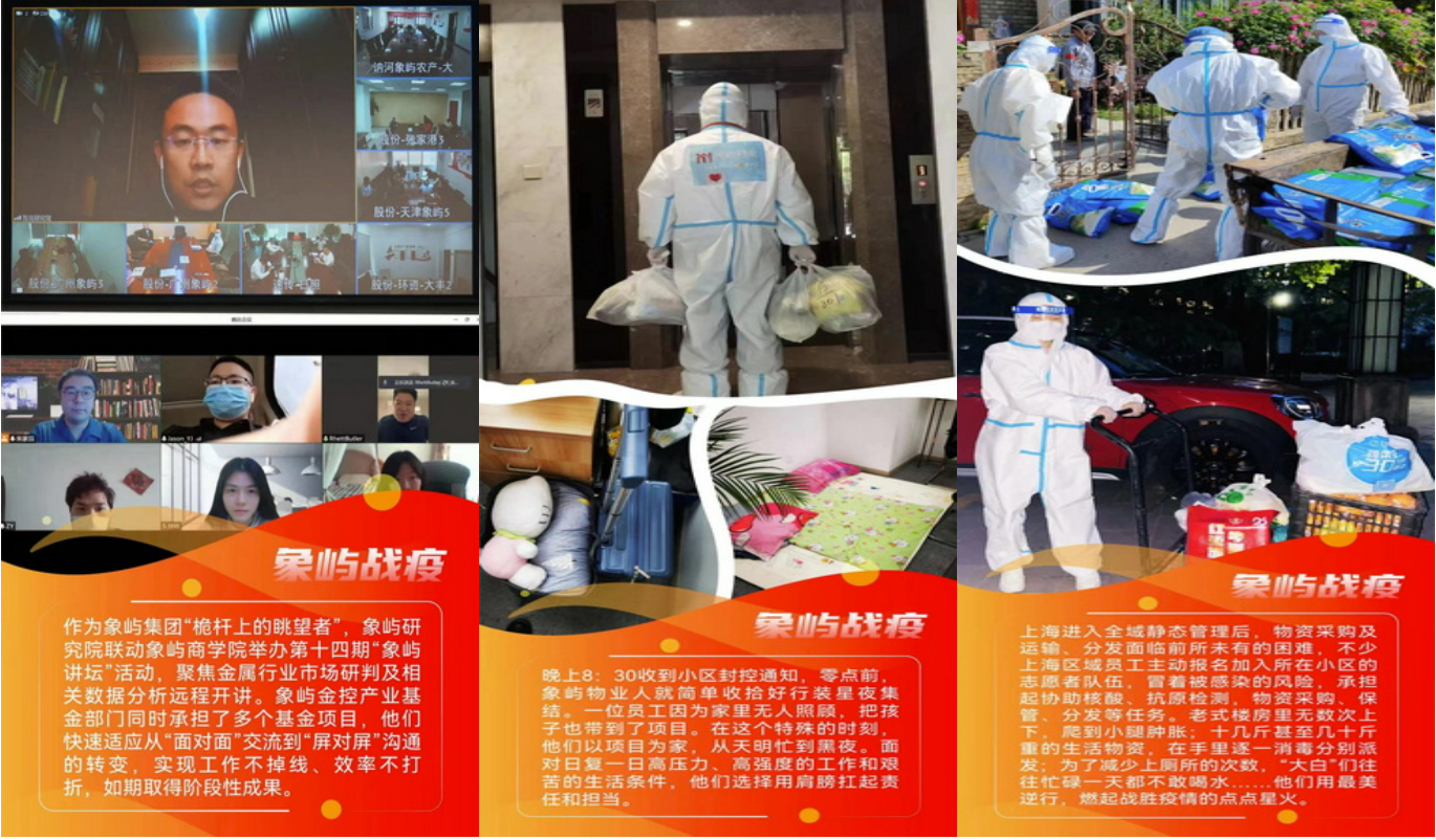 自上海疫情防控攻堅(jiān)戰(zhàn)打響以來(lái),923位象嶼人堅(jiān)守崗位,奮戰(zhàn)在此,他們的安危冷暖牽動(dòng)人心。象嶼集團(tuán)黨委、集團(tuán)公司、集團(tuán)工會(huì)特向在滬員工發(fā)去暖心慰問(wèn)信,并提供24小時(shí)不間斷的員工心理關(guān)愛(ài)熱線,幫助員工疏解情緒壓力。集團(tuán)黨委、集團(tuán)工會(huì)還相繼出臺(tái)多項(xiàng)防疫專項(xiàng)補(bǔ)助政策,并統(tǒng)籌協(xié)調(diào)旗下象嶼股份、象嶼地產(chǎn)、象嶼金象等相關(guān)行業(yè)落實(shí)在滬員工關(guān)愛(ài)各項(xiàng)措施,為員工構(gòu)筑堅(jiān)實(shí)后盾。
