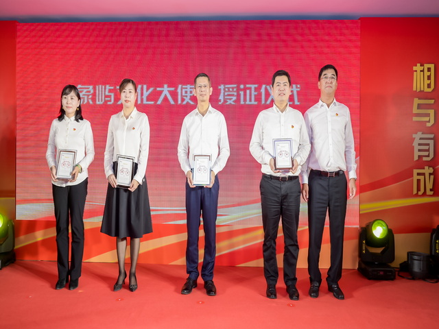 ▲象嶼集團(tuán)黨委書(shū)記、董事長(zhǎng)張水利為新加盟企業(yè)高管頒授“象嶼文化大使”證書(shū)
