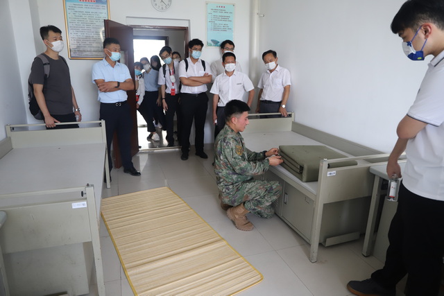 傍晚時分,象嶼集團的復(fù)退軍人員工們來到部隊宿舍,觀看隊列展示,體驗部隊內(nèi)務(wù),追憶軍旅生活。